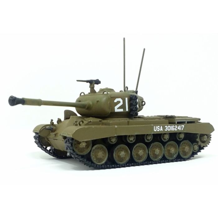 1/48 scale. Features long barrel 90mm elevating Gun, flexible tank treads, traversing turret, turret machine gun, opening hatches, Comes with 4 figures, decals, detailed instructions. Molded in Olive drab. Skill level 2 for ages 14 and up.