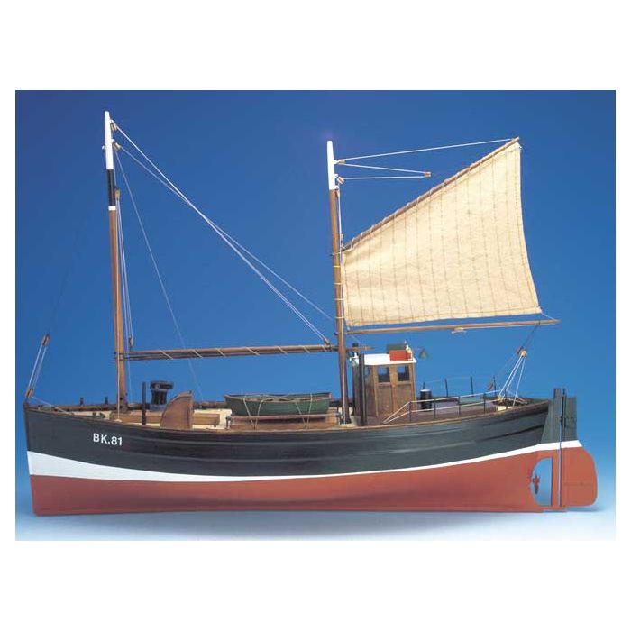 The Motor Fifie 'Amaranth' was built originally as a Sailing Herring Drifter. However, due to the expansion of the Steam powered fishing fleet, Fifie owners fitted these boats with small oil powered motors to enable them to compete. Fifie's were popular and very successful fishing boats. They continued to be built until the early thirties and were still earning money for their owners two decades later. This kit is based on a one piece ABS vac formed hull. CNC cut ply parts make the kit an ideal introduction to the world of marine modelling. As well as cast white metal fittings the kit is supplied with a motor mount, propshaft and propeller, vac formed lifeboat and a pre-stitched sail. The model is designed to take Radio Control equipment or can be built just for static display. The kit has now been updated to include brass stanchions, brass portholes, resin cowl ventilators etc.