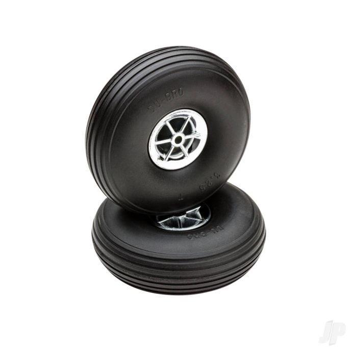 DU-BRO s treaded low bounce captive air wheels have flown on more airplanes over the years than any other wheels on the market! The wall thickness is consistent throughout the wheel giving you a balanced Tyres. Comes complete with a sporty nylon 6-spoke metallic hub. Works well on grass & paved runways. 2/pkg .More Information