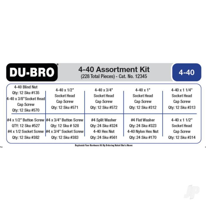 Dubro 4-40 Hardware Assortment Kit (228 piece set) For RC Model Planes