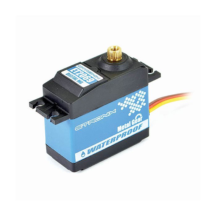 This Etronix standard sized waterproof servo is perfect for car, boat or aircraft applications with its high output and metal gears.