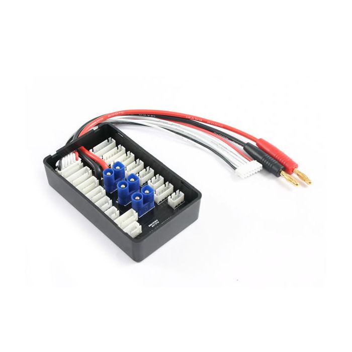The Power ParaBoard is used to balance charge up to 6 lithium batteries in parallel (they must be same cell count). By using this method you can significantly save time on the battery charge process and finally make use of your high power charger!