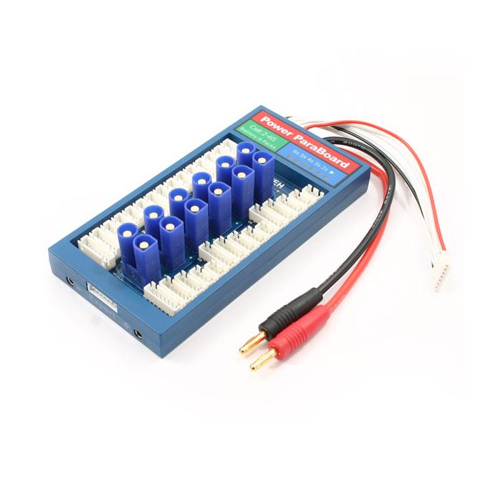 The Power ParaBoard is used to balance charge up to 6 lithium batteries in parallel (they must be same cell count). By using this method you can significantly save time on the battery charge process and finally make use of your high power charger!