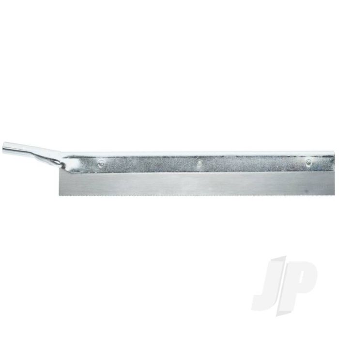 Pull out saw for smooth cutting of balsa wood, plastic and thin metal. Saw is made from carbon steel and zinc plated backer.
