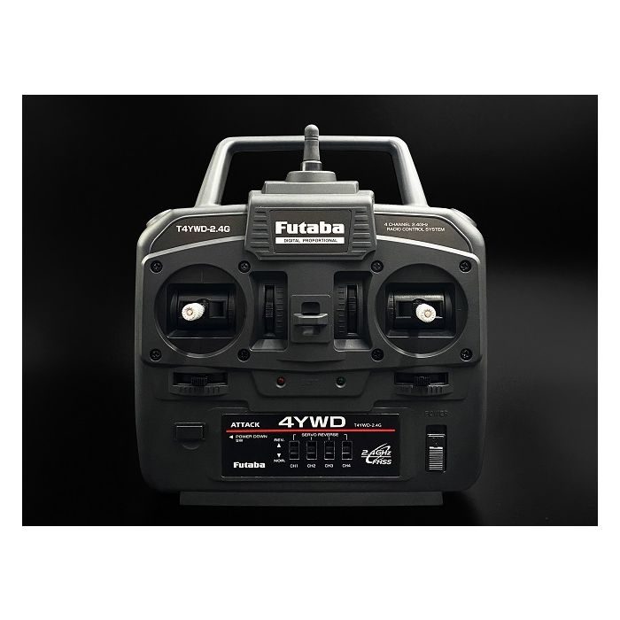 The Futaba 4YWD is an economical 4-channel radio control system specially designed to control models such as tanks, trucks or pick-ups. The accurate transmitter sticks and proven Futaba quality guarantees precise and reliable control of any model. The transmitter is supplied ready to work seamlessly with the Tamiya multifunction units MFC-01 / MFC-03 (truck) or MFC-02 (pick-up / tank) and both stick units come set as self-centering. All driving and special functions of the Tamiya MFC and DMD units can be controlled with the 4YWD system.