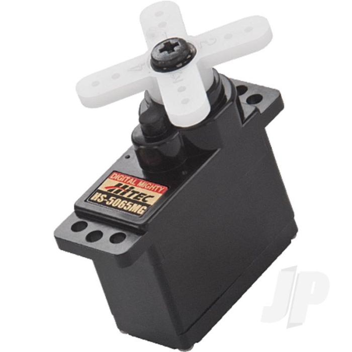 Hitec raised the bar by offering the ever popular HS-65 in a new digital version! The HS-5065MG High Performance Micro Servo features Hitec's digital, programmable circuit for incredible resolution, centering and holding torque; also featuring metal gears, a top-ball bearing, and at 31 oz./in. of torque with a quick transit time of 0.11 sec at 6 volts, it is no doubt THE choice for high performance micro helicopters, electric park flyers, and 1/18 scale cars.