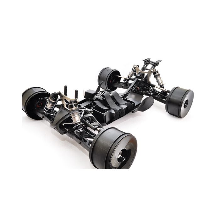 A stealth grey anodized aluminium chassis and components adds to the necessary style, all topped off with the latest cab forward bodyshell and racing dish wheels.