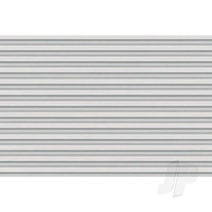 JTT's complete range of embossed styrene plastic sheets can be used to create roofing, flooring, siding, rock, stone, metal plate and other architectural parts. The sheets are demanded by architectural firms and modellers for their accurate, embossed detailing and versitality. This pack includes "Corregated Siding", O-scale, 3.2mm (1:48).