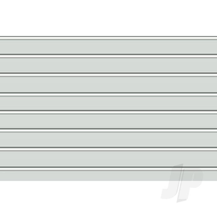 JTT's complete range of embossed styrene plastic sheets can be used to create roofing, flooring, siding, rock, stone, metal plate and other architectural parts. The sheets are demanded by architectural firms and modellers for their accurate, embossed detailing and versitality. This pack includes "Ribbed Roof", HO-scale, 1.2mm (1:100)
