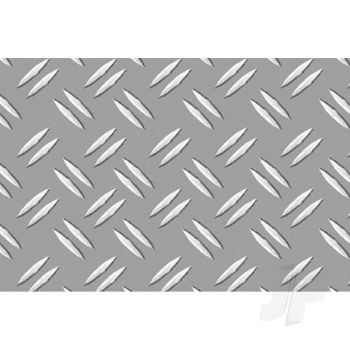 JTT's complete range of embossed styrene plastic sheets can be used to create roofing, flooring, siding, rock, stone, metal plate and other architectural parts. The sheets are demanded by architectural firms and modellers for their accurate, embossed detailing and versitality. This pack includes "Double Diamond Plate", O-scale, 6.0mm (1:48).
