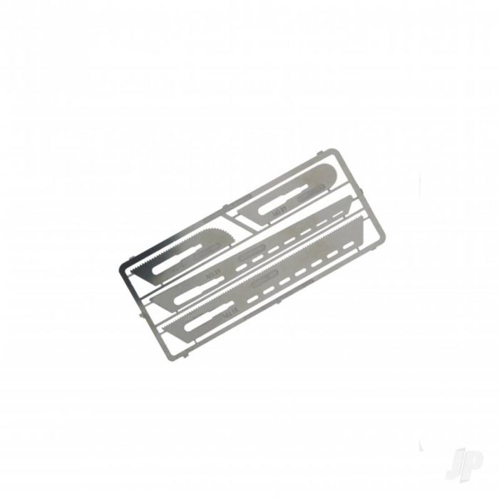 The set includes 4 very fine saw blades (0.12mm thickness). Excellent for intricate sawing & cutting in plastics, wood and photo etched parts. Blades can fit all small fitment scalpel handles. Saw set with handle is available (PKN0008/K).