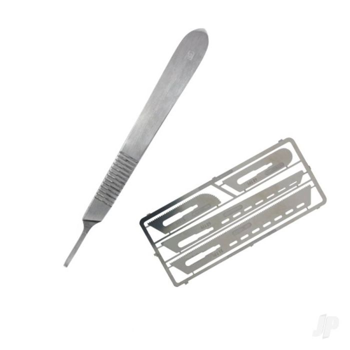The set includes 4 very fine saw blades and Scalpel handle. Excellent for intricate sawing & cutting in plastics, wood and photo etched parts. Blades can fit all small fitment scalpel handles.