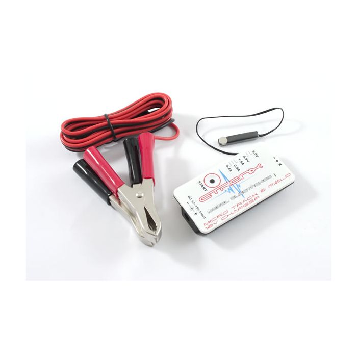 This pocket size micro charger is the perfect pit or flight box addition for receiver battery charging. A fast charger for Ni-Mh or Ni-Cd batteries, it's temperature control provides a safe, stable and fast method to charge batteries. With selectable switches for 6.0v and 4.8v size batteries and three charge rates of 0.4A, 0.8A and 1.5A this 12v rated mini charger is ideally suited to virtually any sized receiver pack on the market. Supplied with heavy duty battery crocodile clips. Don't get caught out with a flat receiver battery pack! An essential piece of kit for every pit box!More Information