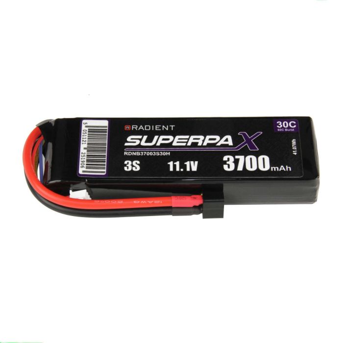 Radient 3700mAh 3S 11.1v 30C RC LiPo Battery w/ Deans (HCT) Connector Plug