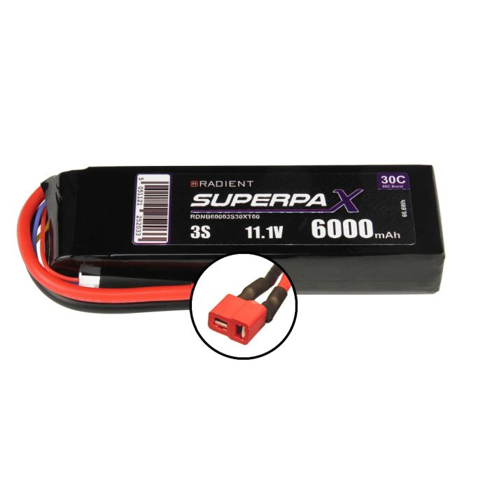 Radient 6000mAh 3S 11.1v 30C RC LiPo Battery w/ Deans (HCT) Connector Plug