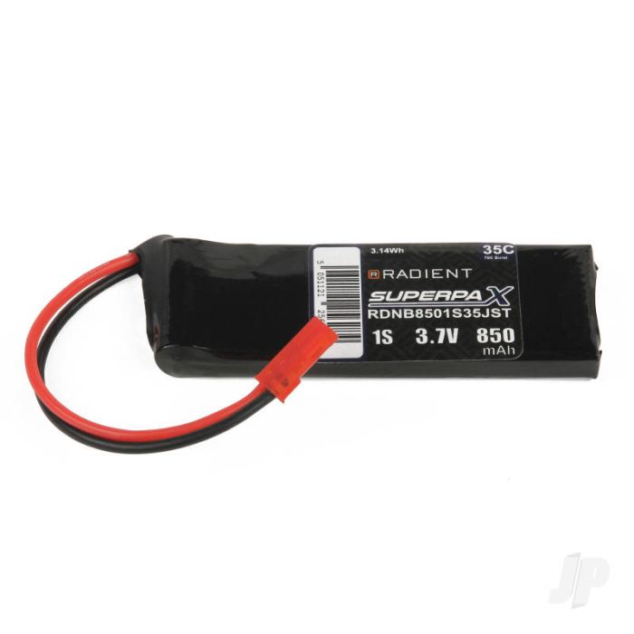 Radient LiPo Battery 1S 850mAh 3.7V 35C w/JST Connector