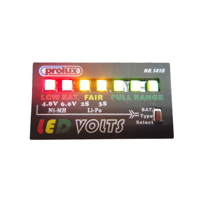 A high quality, intelligent, battery monitor and checker with 7 colour ultra bright LED's to indicate actual voltage and charge status for both NiMh and LiPo battery packs. The different coloured LED's give an instant visual indication of the charge status. Each LED also represents a specific voltage as detailed in the charts provided for the different battery types.