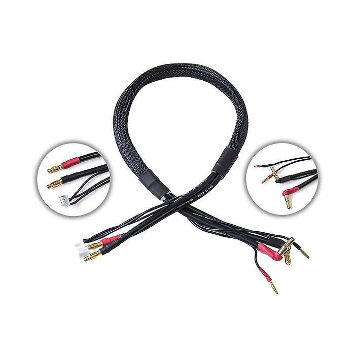 Suitable for charging 1S or 2S batteries. Stepped bullet connectors are compatible with batteries that use 4mm or 5mm sockets. Length = 50cm (19 11/16")