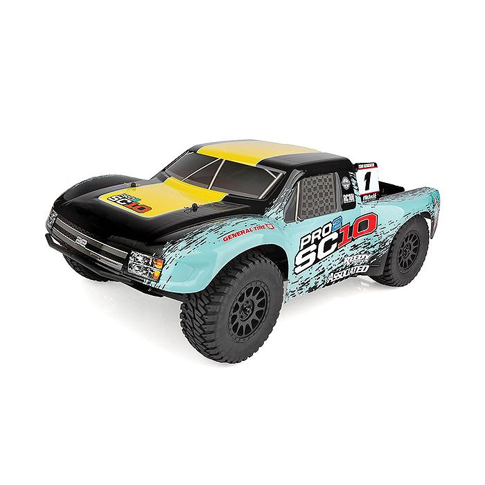 Team Associated's Pro2 SC10 is a Ready-To-Run RC replica of the Pro 2 trucks driven in Off Road Racing. The Pro2 SC10 features a rear motor short-course chassis that uses many of the same parts from the widely successful RC10SC5M platform. Adjustable aluminum big-bore, coil-over shocks, a sealed-gear differential, and heavy-duty CVA driveshafts are all features that come standard on the Pro2 SC10. A powerful water-resistant Reedy electronic speed controller and 3300kV electric motor power the Pro2 SC10 for hours of high-speed fun. To handle the power, the Pro2 SC10 comes equipped with realistic MethodTM Race Wheels and tires specifically made to handle any off-road condition.