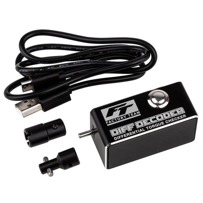 The Factory Team Diff Decoder is an indispensable tool for the hardcore racer. The Diff Decoder displays a consistent, measured value for differential hardness rather than relying on an estimation or feeling. This measurement can be used to build differentials to a specific hardness, fine tune to improve vehicle performance, understand the differences between oil brands and temperature, or to replicate an existing differential.
